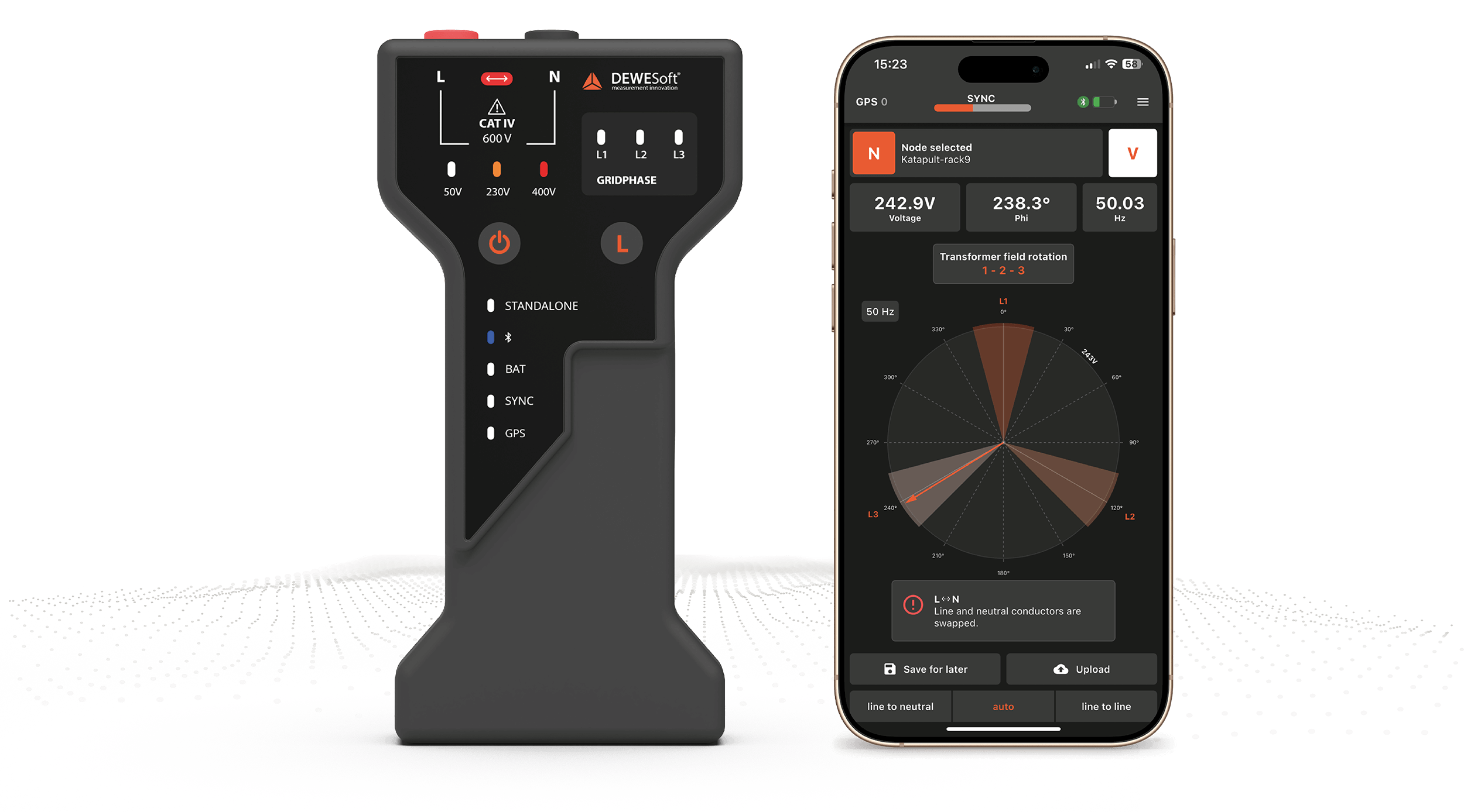 DEWESoft Gridphaseベクトル電圧計は、電力網のメータ前後を問わず、あらゆる場所でシームレスな位相識別を可能にするデバイスです。同期位相器技術を採用し、マルチメータで電圧を計測するのと同じくらい簡単に位相識別を行うことができます。DEWESoftは手頃な価格の位相識別ソリューションを提供し、さまざまな運用において技術者やエンジニアを支援しています。