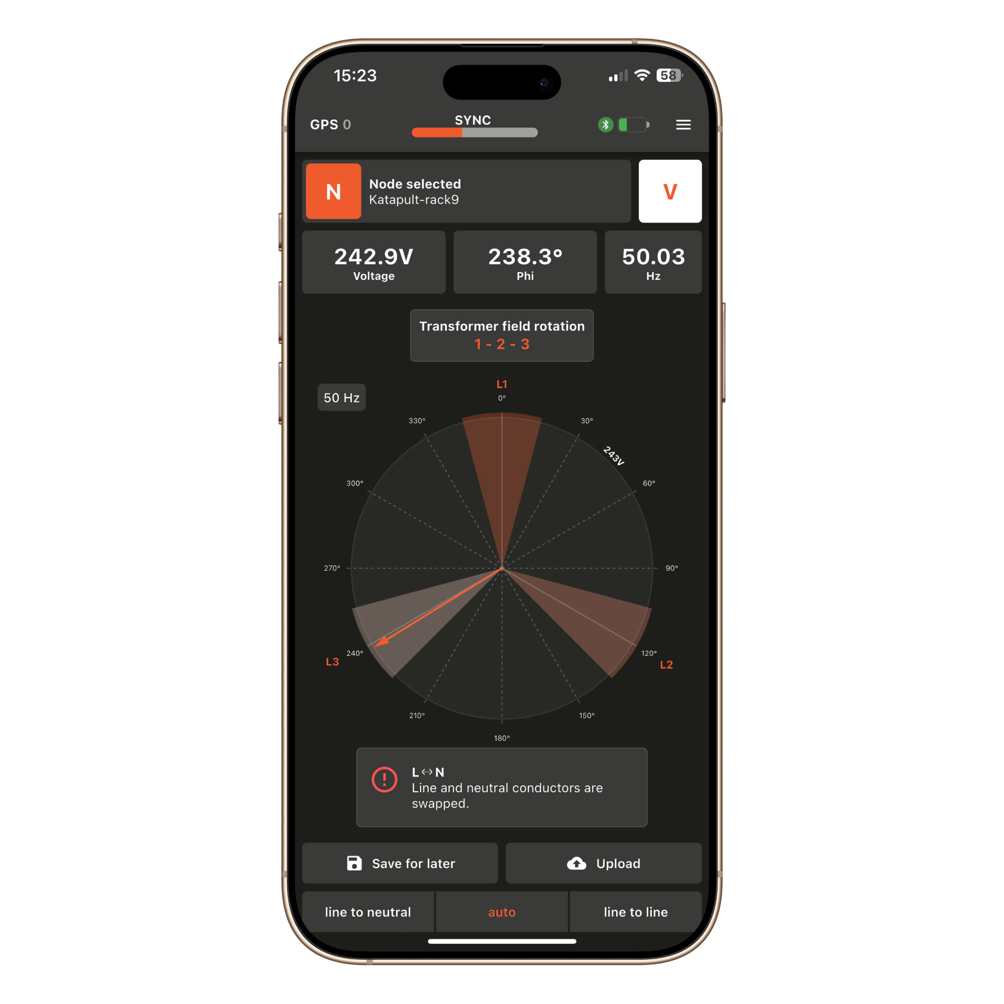 このプロセスは基準計測値を維持し、正確な位相同定を提供するバックエンドシステムによって促進されます。デバイスはスマートフォンに接続され、スマートフォンはバックエンドシステムへの必要なデータ接続を提供し、リアルタイムの位相同定を実現します。