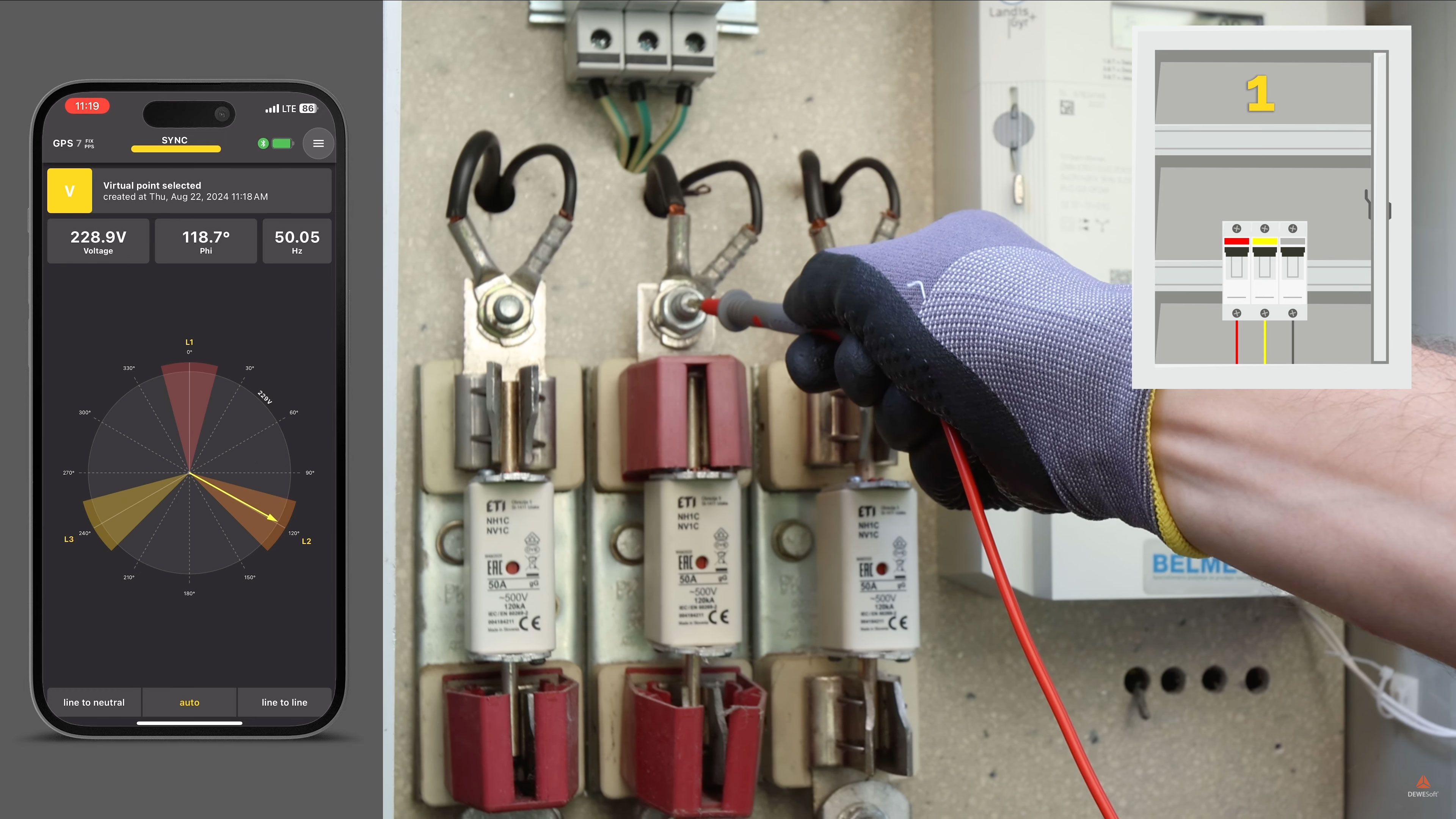 電化が加速するにつれ、電力品質評価には同一設備内の複数地点での計測が必要となることが多くなっています。大規模なシステムでは、電圧が低下している単一の導体を単純に追跡することは現実的ではありません。Gridphaseは、電圧が低下している各相を確実に特定し、メータや電力アナライザが各計測ポイントで正しい位相に接続されていることを確認することで、こうした推測作業を排除します。